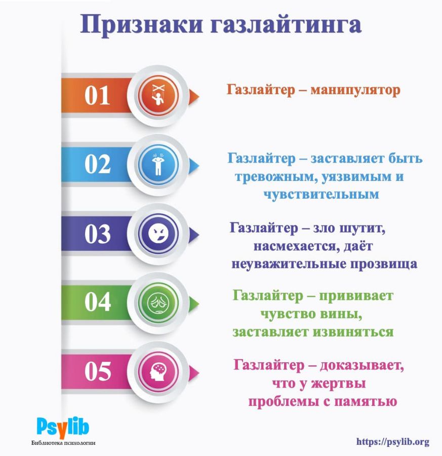 Если вы почувствуете, что газлайтер пытается манипулировать вами, — постарайтесь не ввязываться с ним в спор. Он все равно ни к чему не приведет: цель газлайтера не докопаться до истины, а убедить вас в своей точке зрения. Лучше просто скажите своему собеседнику, что ваши мнения с ним не совпадают, и предложите закончить разговор.